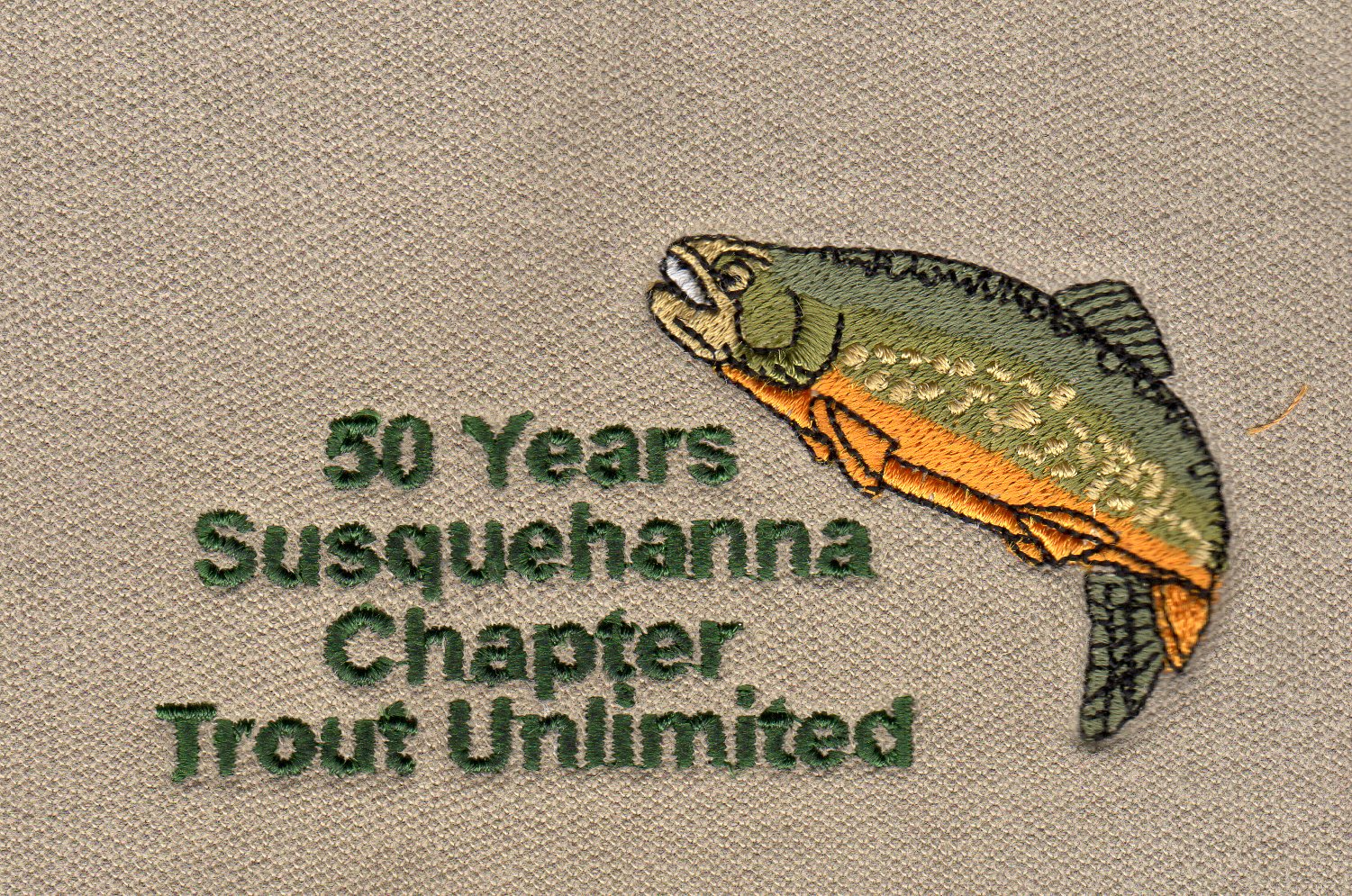Our chapter now has new 50th Anniversary hats. They are embroidered, and feature a brook trout with the copy “50 years Susquehanna Chapter Trout Unlimited”. The color is medium tan with dark green visors (both sides, of course) , and have velcro adjustment straps. They will be available at Chapter meetings and events. Price – only $15.00. We have only 6 dozen, so get yours soon!