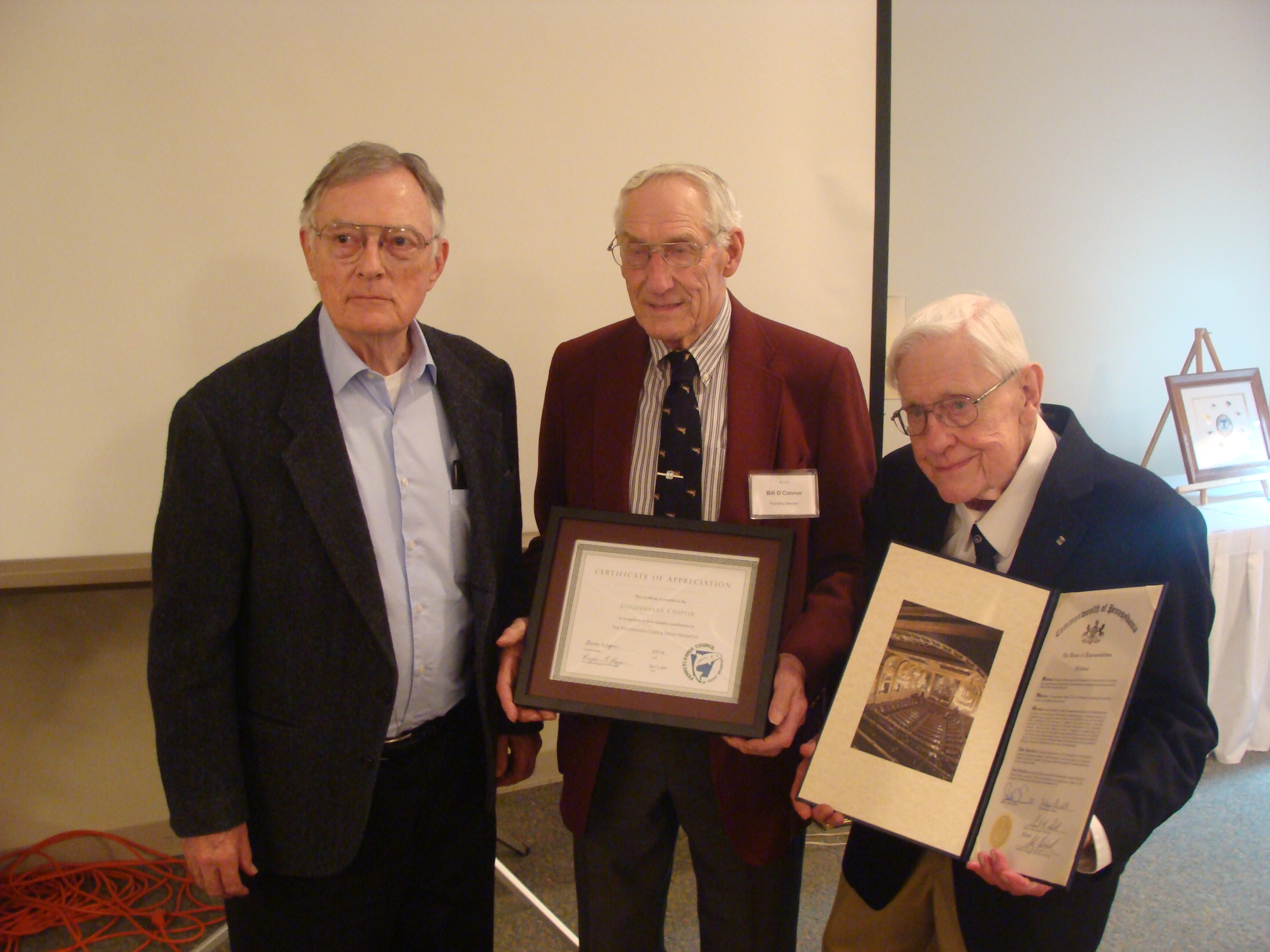 Three of the founding members of the Susquehanna Chapter of Trout Unlimited. From Left to right: Dick Leaver, Bill O’Connor, and Bob Rinn