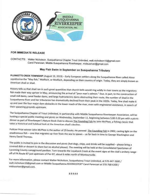 Welcome to the Susquehanna Chapter of Trout Unlimited. Founded in 1964, we are one of Pennsylvania’s oldest chapters, and help protect many miles of central Pennsylvania’s finest streams. Some of our waters include Muncy Creek, Loyalsock Creek, Black Hole Creek, Pine Creek, Slate Run and Lycoming Creek View all posts by Susquehanna Chapter of Trout Unlimited