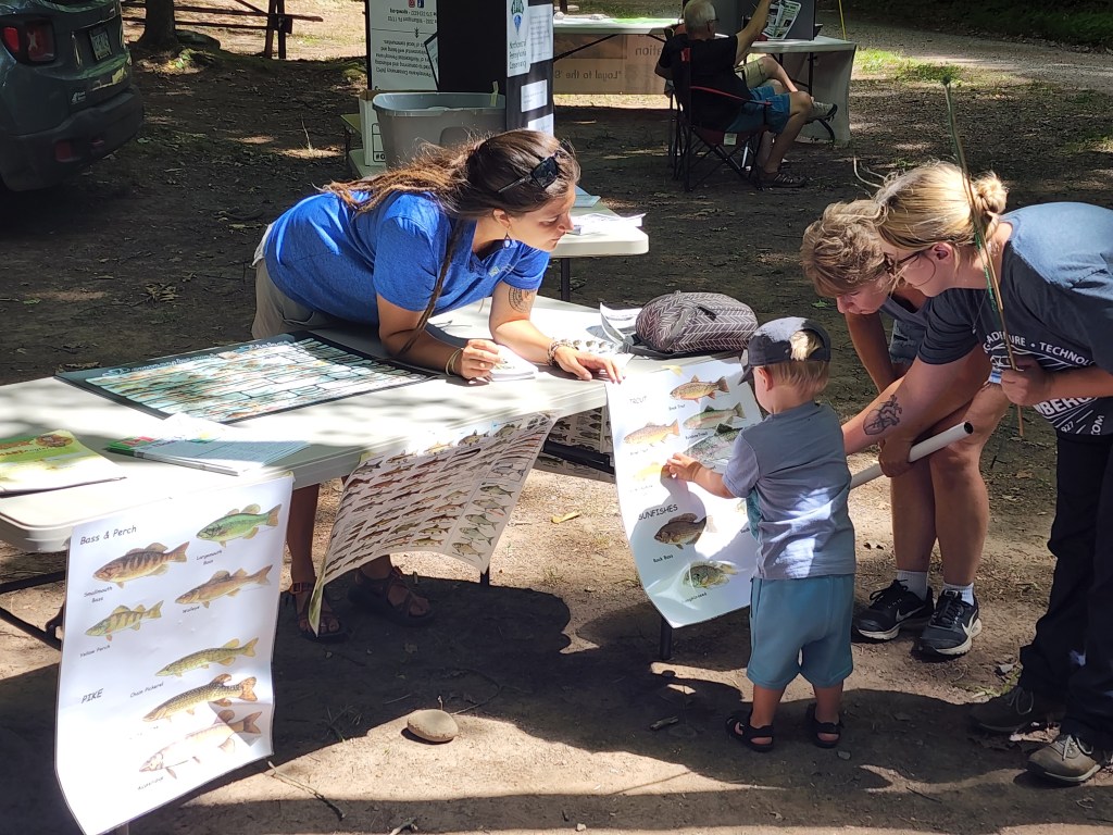 A great day at Worlds End State Park. Had a lot of great people visit our table and we met many TU members from other Chapters. The fishing pond we share with the Northcentral PA Conservancy was a huge success with the kids (and a few adults). After catching the fish they took it over to a table and used charts to identify the fish they just caught. After identification, they practiced catch and release and put the fish back into the water. Sara from the Northcentral PA Conservancy did a great job helping everyone identify the fish.